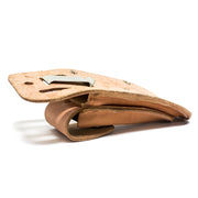 - Construido con cuero de novillo de grano superior natural moldeado, cosido y remachado.